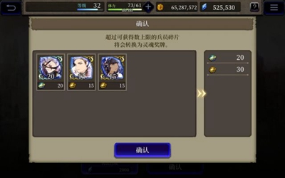 冒险者反复获取的兵员会自愿转化为碎片,用于极限冲破。