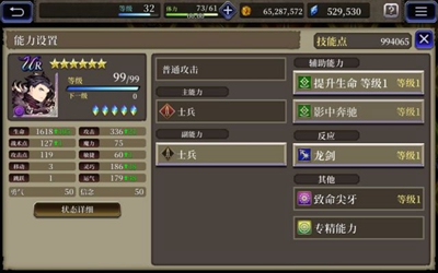 每个兵员都市有本人的众项主动本事和被动本事,简直可分为平凡攻击、主本事、副本事、辅助本事、响应本事和其他本事,冒险者能够自正在设立本人需求的本事。