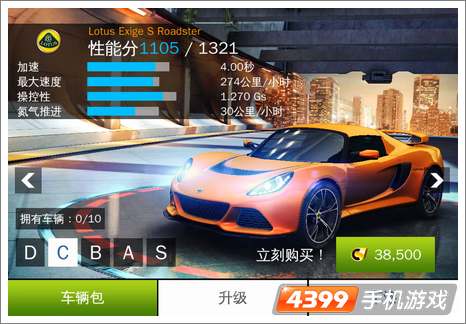 狂野飙车8中的C级车途特斯 Exige S Roadster,与Coupe车型相较,车身尺码并没有太大的转折,轴距保卫正在2370 mm,具有通畅动感的车身线条,并具备外扩而显得霸气统统的轮拱、加大的进气冷却孔与新式前下导流片与后分流器,正在视觉上营制出粘稠的机能风韵。动力体例则是搭载排怀抱3456c.c.的3.5L V6引擎,正在加上具备EATON TVS双涡流本事的Harrop HTV 1320机器增压体例之后,具备345hp/7000rpm最大马力与40.8kgm/4500rpm峰值扭力,可遴选搭配EA60六速手排或最新的SPS(Serial Precision Shift)序列式变速箱,加上仍相当轻疾的车重,创建出0-100km/h加快仅4秒、极速233km/h的雄壮浮现。