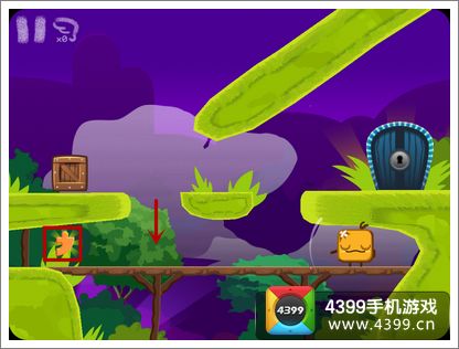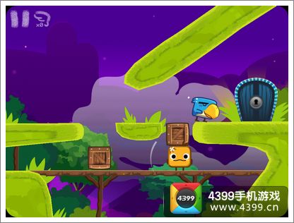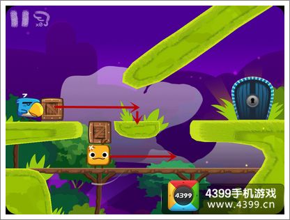2、梦逛鸡会推着箱子向右挪动,待其走到中心的平台时,将小方块赶速挪动到第二个坑底下。