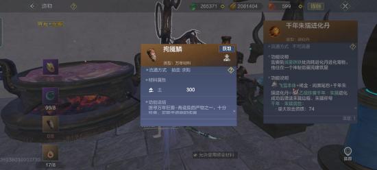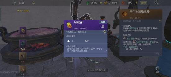 千年朱獳进化丹:①可通过商城勾玉置备,;②也能够通过配方自行合成,合成配方:万年兽魂*8+元液+8+拘魇鳞*8+翡绒羽*8;