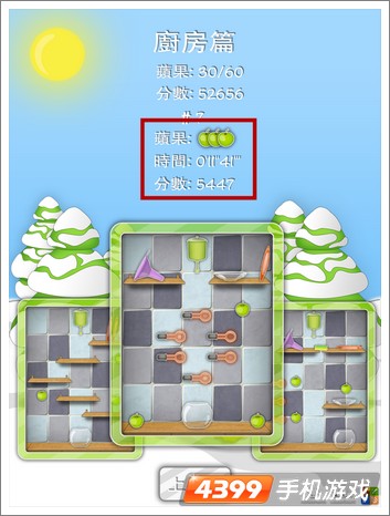 答:逛戏的分数是和玩家们正在合卡中收罗的苹果数目和所花的通落伍候相合系的,正在越短的时候内把苹果收罗满(三个),分数就越高。(ps:不懂何如急迅过合的玩家们能够看看包子小编写的宠物爱冲凉厨房篇6-10合攻略大全 哦。)