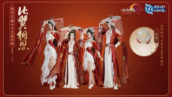 双节同庆,海量七夕豪礼今日正式上架,全新侠侣定制七夕礼盒“比翼相思”,男款超逸随便尽显侠者风范,女款雅致华美彰显魅力全体。更有全新双人舞剑交互殊效行动,剑舞惊鸿,影如逛龙!同时礼盒还附赠笠帽样子殊效背部挂件“蛮蛮”作点睛之笔,开启殊效后侠士即可带上笠帽,薄纱幂篱掩映,再添一丝微茫美感及侠客风情。比翼双飞仗剑逛江湖,仙人眷侣正如是!