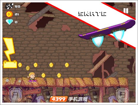 滑板兴办可能让小矿工飞起来,逛戏中会显露极少比拟长的缺口,假若用跳跃大概无法跳过,这时分滑板兴办就可能轻松奔腾过去,形式是点击右下角的B按键,要细心的是,左边能量栏用完时,兴办隐没。