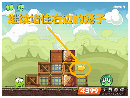 3.用另一个木箱子向右推,堵住另一边的笼子。