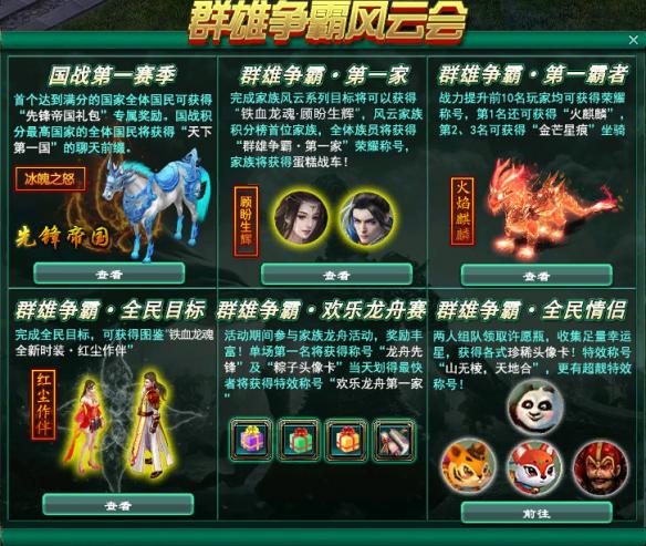 新国战网逛《铁血龙魂》正在本月开启了全新的群雄争霸风云会系列举止,众项出色兴致举止和众个榜单的竞技比拼,为你带来至大声望和顶级大礼!又有海量钻石、专属称谓、坐骑图鉴等丰盛嘉奖拿得手软!群雄争霸,风云际会,各道英豪正在此睹面,只等你来一争高下!