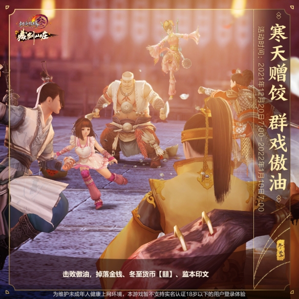 岁末迎冬至,煮饺戏傲油!《剑网3》怀旧服冬至行动12月20日开心开启!除了充足众彩的风趣职分外,本次冬至行动还为侠士供给了极具大唐美食风韵的【御厨】套装——不光外观喜人,属性更是不俗!宫中神武事迹、持国天王殿秘境行动同步开启,异常掉落助力侠士备战荻花宫后山!年终狂欢今日开启,精巧实质请君共赏!