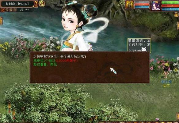 中秋佳节,兴旺长安。庶民们纷纷绘制荷灯,灯下燃烛,放入江中漂流游戏。举止光阴,诸位玩家可到长安东(87,122)处找荷灯仙子置备荷灯,然后前去安放点(95,121)邻近放荷灯,还可正在荷灯中写下我方的中秋庆贺后,也可点击别人放的荷灯,回送庆贺。其它,拜师学艺职业中获取的荷灯也可正在本举止中利用。