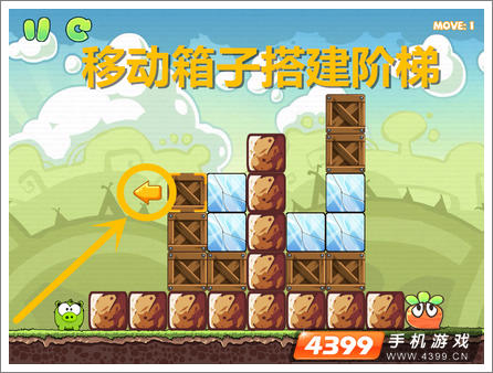 2.向左搬动木箱搭修台阶。