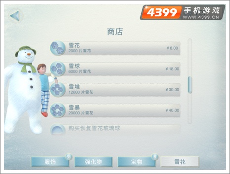 2.店铺得回:逛戏中设有店铺,玩家们可能通过店铺置备雪花,可是置备需求花费百姓币哦。