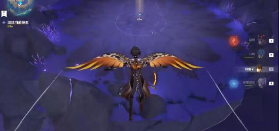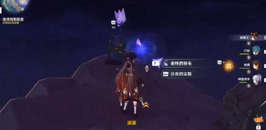一块飞到最上面,获得职司道具【独特的羽毛】,正在后面鹤观岛的职司会用得上。回去找冒险家交职司,职司落成~
