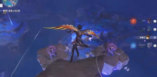 从这里咱们必要飞到3个御币处,中心的传送点处也是镇石所正在的位子。