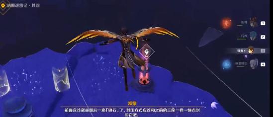 和上一个镇石解谜相似,这里的线索就利害常昭着的传送门。进去之后一块往上飞即可。