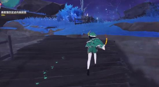 动物的脚印会正在舆图上高亮显示,无须元素视野也能看得很明白。随同脚印,来到神社。