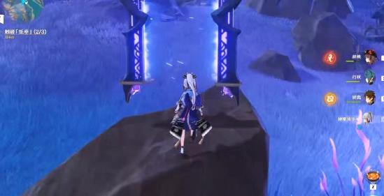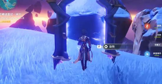 依据派蒙提示,正在左近找到一个可疑的传送门,进去。
