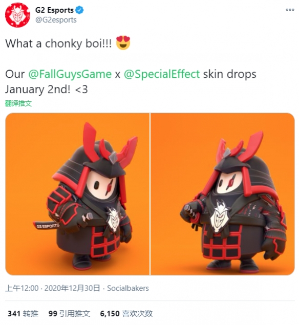 正在先前的早些时分,《糖豆人》官方推特建议了慈善竞标竞赛。出价最高者将和糖豆人斥地商Mediatonic合营,为逛戏推出全新皮肤。最终,外洋视频主Ninja、Mr Beast、G2电竞俱乐部以及Aim lab以纠合出价100万美元夺得了此次勾当的告成。而正在1月8日,四款皮肤均依然正式上线。