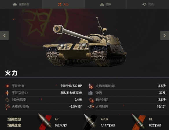 比起躲正在后方灌木丛里长途掩袭,K-91-PT更适合抬起那122毫米的火炮,正在中短间隔直面交战。这门主炮底子精度为0.4,AP弹和APCR弹的单发损伤可达390点,前者的均匀穿深为258毫米,尔后者可达315毫米。通过选装适当的配件、乘员能力和缓于、给养和指令,还可能将火炮的装填年华消重至6秒,较疾的袭击节拍配上强有力的火炮,使你正在面临重坦时也能逛刃众余。