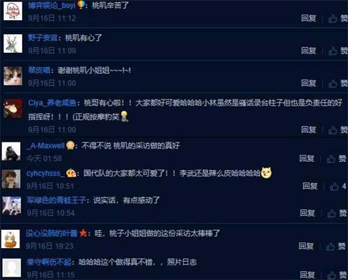 中国队选手统一笃志拿到逐鹿告成,让屏幕前的咱们感谢不已,这样精粹的逐鹿,观众们信任也念第偶然间懂得到选手们的环境。桃叽也是亲临泰国站现场,分享了中国队正在曼谷的环境,让大师也许加倍懂得天下杯的环境。固然这是桃叽第一次走下阐明台负责现场记者,但她的卓着发挥仍旧取得了大师的信任,正在微博和NGA论坛上都有玩家歌唱她的发挥。