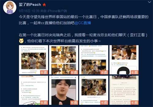 桃叽除了现场播报了天下杯的最新音书,她也联手CC直播推出了《天下杯纪行泰国站》的精湛日记,分享了本次天下杯台前幕后的小事,席卷桃叽采访中国队成员的采访、选手们正在曼谷的存在照。桃叽和这些国内选手的相闭相当好,正在此次的天下杯纪行中也也许看出她纯洁可爱的一壁,诙谐诙谐的采访也让被选手们也许安宁地分享自身的睹解。