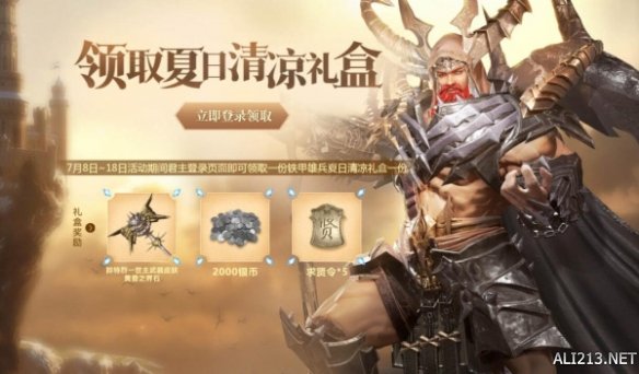 7月8日至7月18日,铁甲雄兵还为大师盘算了一份夏季凉速礼盒!营谋时候登录页面即可领取夏季凉速礼盒,掀开即可取得腓特烈一世主火器皮肤、银币x2000以及求贤令x5。领取礼包后奖赏将通过邮件直接发放,列位玩家不要健忘查收哦!