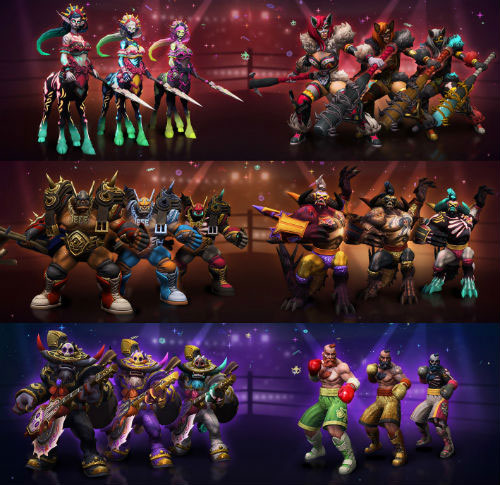 “超时空肌肉蹦弹”大赛的擂台灯光仍旧停当,露娜拉、桑娅、迪亚波罗、加尔鲁什、精英牛头人酋长和卡拉辛姆这些行家熟练的俊杰也已蓄势待发!穿着好五彩光明的摔角面具与装束吧,沿道来为“超时空肌肉蹦弹”摔角大赛的冠军金腰带而战!