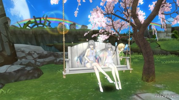 和平的午后、彩虹、秋千、樱花树……再有比这更迷人的场景搭配吗?!这位封印者真的是选景妙手哦~