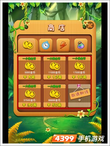 2.商铺得回:逛戏中设有商铺,商铺里就卖逛戏币,可是这里的逛戏币须要用黎民币添置。(ps:土豪法适合土豪,小编是小屌丝,如故乖乖过闭得逛戏币去啦。)