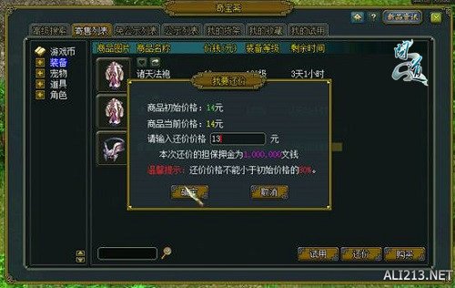 其它,为了给诸位道友更好的逛戏体验,体系还正在1.71公测版本中升级了还价成效。玩家可能对免公示、可预订或正在寄售期内且寄售结余时刻大于等于2天的商品举办还价。其它,还价还须要操纵逛戏内的逛戏币来缴纳肯定的担保金,但不会与现金联系。还价之后,若卖家订交后,体系将会发送一个单人采办订单给买家,买家可能操纵现在价钱采办此商品。可是,即使买家未能正在所限的时刻内采办,则卖家可能收取典质的片面押金。
