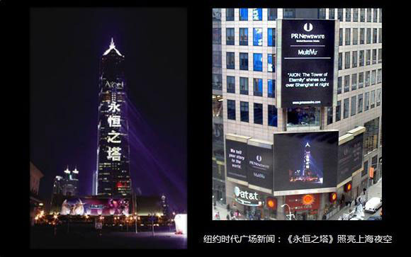 事实上,依靠大胆、前卫的表现手法,玩转城市的地标建筑,一直盛大游戏和《永恒之塔》的拿手方式。相较于这次的“入海”破冰,早在2009年,《永恒之塔》就上演了一出“上天”营销——金茂大厦变身真实版永恒之塔,这也是游戏广告第一次以如此高调的姿态出现在众人的视线中,纽约时代广场新闻甚至做了大篇幅的相关报道。