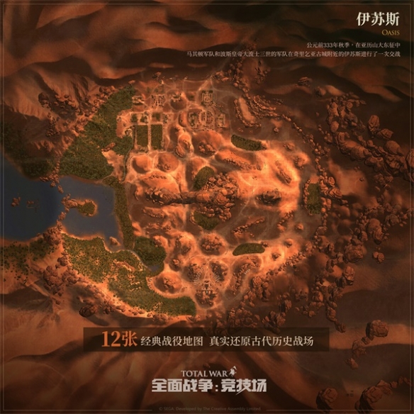 《全面战争:竞技场》中常有的一个场景是:在伊苏斯战场开阔地形上,双方步兵缓缓接近,战场气氛紧张肃穆。随着步兵接战瞬间,两军搅作一团浴血厮杀。正面战场上无论你如何操作步兵军团进行正面合围,敌军步兵肯定也有反制措施,甚至投入骑兵反包围你。此时,身为将领的你应当超脱于混乱中,快速分析战场复杂的山脉地貌中,是否有可以巧设伏兵,袭敌于要害的区域,又是否有适合骑兵包抄,歼敌于合围的路线。这要求你仔细谋划后与战友沟通执行。