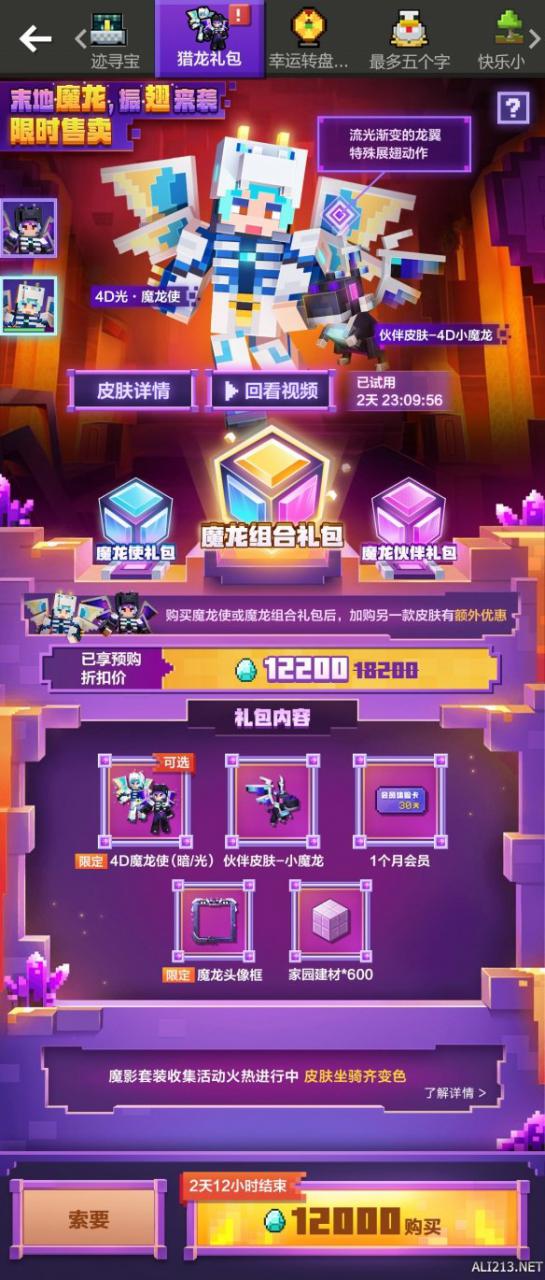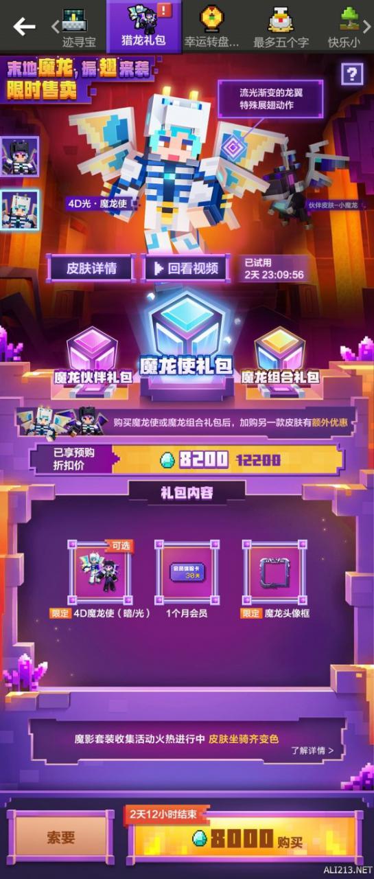 10月1日至10月10日,魔龙使国庆限定礼包正式发售!想要化身神勇的魔龙使与可爱的小魔龙在这个假期一同开启方块冒险吗?那就快点击活动页面,将帅气的魔龙使皮肤收入囊中,成为所向披靡的末地王者吧!