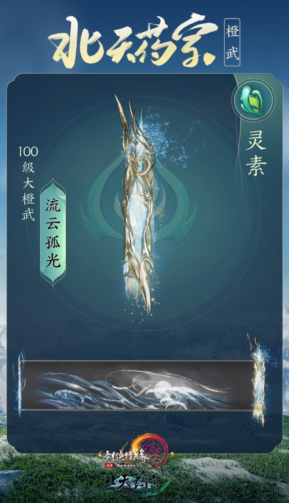 “灵素”心法100级大橙武——流云孤光,轴长一尺二寸,合重四斤七两。游驹第一次见到这卷“流云孤光”,是在师父的行箧中,他很奇怪为何这一卷神兵被封藏,从未见师父用过。往常爱唠叨的老爷子却只答,是予人的赠礼,游驹再问,难得没了下文。直到后来,才从零星碎语中勉强拼出一个轮廓。原来师父正是为等这卷神兵锻成,故而误了药宗灭门时最后那场应象大会的时间,也从此,再也没能回去。师父名季云洲,此卷原名“流云归光”。