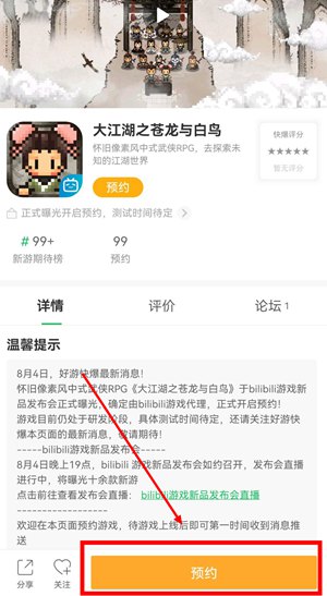 【如何预约大江湖之苍龙与白鸟】