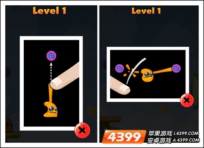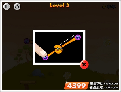 1、来到了第三关,游戏又给你介绍了小紫球的一项新功能,可以左右拉扯外星人的手臂。