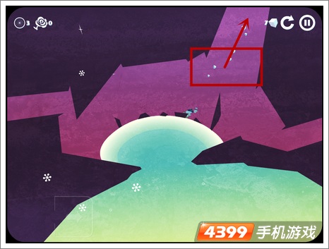 2、外星人的两条小手臂连接着两头的紫色圆球,它们在同一水平线上了,这时你果断用手指滑短左边的手臂,外星人就会像钟摆一样左右摇摆啦,当它触碰到UFO入口的小星星之后,它也顺势进入了UFO。第一关就获得三星通关啦!是不是很简单吧?
