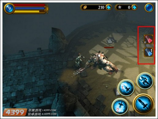 3、合理使用技能,遇到小怪的时候只要用普通的刀就可以解决他们,像右下角的特殊技能当然是要用在BOSS身上啦,快准狠才是王道。