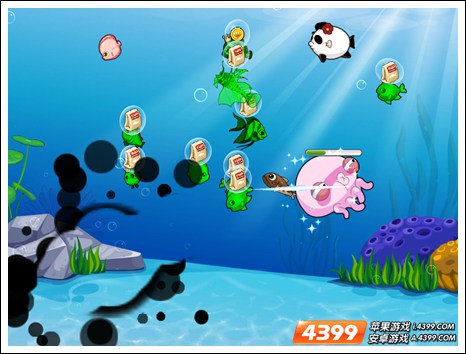 2.大章鱼的攻击方法:喷射墨汁把屏幕抹黑,这时只需滑动手指来去除即可,要打跑章鱼就是对他一顿猛戳,在打的过程中章鱼头上方有条能量条,当能量条没了的时候,你就打败大章鱼了。