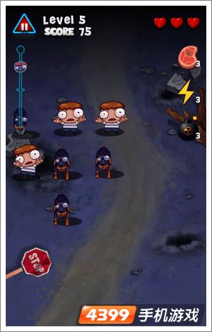 对于左右移动的僵尸,很容易混淆玩家的视觉,而此时也是最容易出错的时候,很容易顾着点击某只走位风骚的僵尸而不小心点击到人,造成游戏失败。正确的应该是不急着消灭左右移动的僵尸,待其走到空旷点的地方时再点击消灭,这样可以很好的保证准确性。