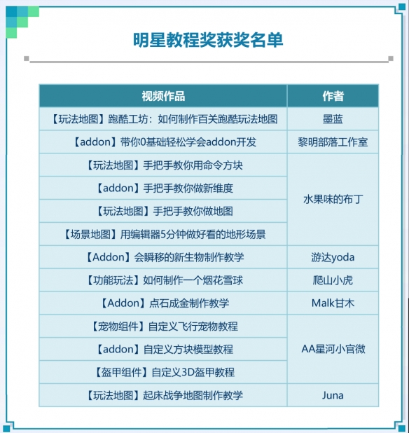 创造的魅力无穷无尽,学习更多的开发技巧,能帮助大家在方块世界里更畅快地建造。进入投票阶段的16支优质视频,将会在开发者官网教学视频栏目进行展出,与各位一同分享。这么棒的教程,大家可千万别错过哦!