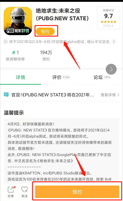 如何预约绝地求生2手游享受一手消息提醒