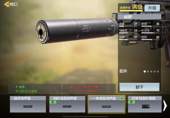 首先枪口方面我们还是选择熟悉的一体成型消音器,在使命召唤手游这款游戏里面,消音器的用处还是特别大,增加百分之25的射程和一个消音效果,增加枪械射程的同时,还能增加自己的隐蔽性,让敌人不容易发现我们,