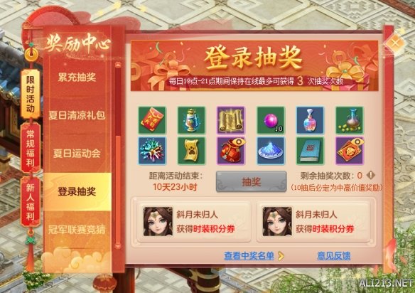 《神武4》电脑版福利活动登录抽奖也将于7月9日维护后至7月22日限时开启,活动期间,30级以上玩家每日在19:00至21:00登录游戏即可获得1次抽奖机会,其后每在线次抽奖机会、每天最多有3次抽奖机会且抽奖机会在19:00至24:00均可使用,参与抽奖即有机会获得神兽牛云长和时装大奖,持续为三界少侠送出更多惊喜。
