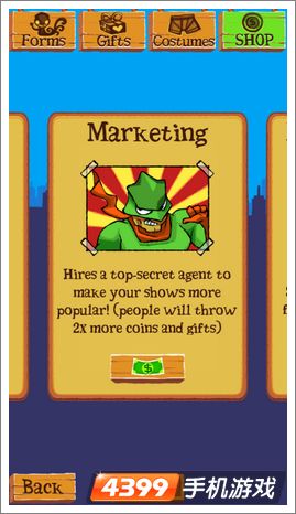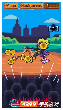 玩家通过自己的表演,当观众的受欢迎度的能量条满后,就会给玩家投掷游戏币,玩家点击游戏币就能获得。这是自己卖艺的钱啊!