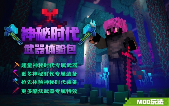 优质组件《神秘时代》引起了众多冒险家的探索兴趣,想要更多地了解《神秘时代》?那就从本组件开始体验吧!《神秘时代武器体验包》整合了《神秘时代》的多款工具、武器和盔甲,并简化其合成方案,增强了使用效果,为大家带来了《神秘时代》的高效体验。组件高度还原奔流斧、风雷剑等《神秘时代》专属武器装备,还有炫酷的专属武器特效供冒险家抢先体验。如此方便的体验组件,冒险家们不要错过啦!