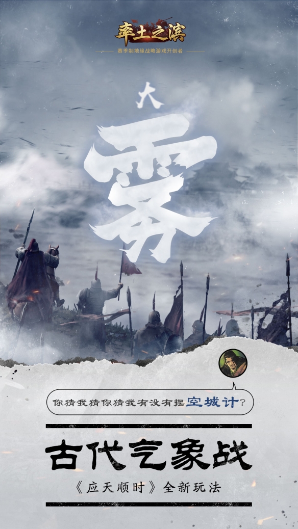而能够遮蔽视线的大雾,也在古代战场中扮演着重要的角色,三国演义中,有着诸葛亮趁大雾天气草船借箭的经典故事,而汉高祖刘邦被冒顿单于困于白登,刚刚建立的大汉王朝危在旦夕,所幸天将大雾,刘邦才能够派出使臣说服单于夫人,避免了鱼死网破的下场,并在大雾的掩护下,带领军队撤离白登山。而在《率土之滨》中,玩家也可以利用大雾遮蔽敌军视野,来一场声东击西,或者空城计,来与敌人斗智斗勇。