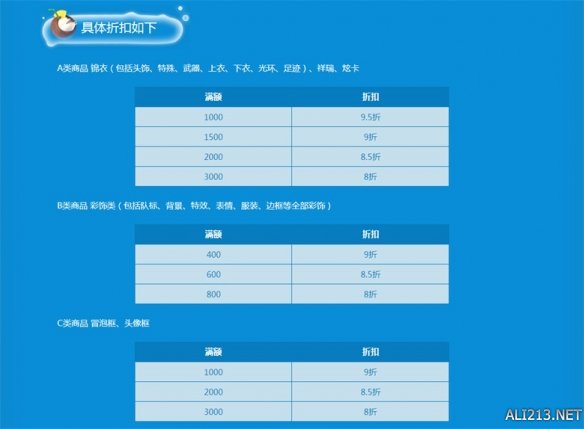 暑假优惠活动期间,大家在购买自己喜欢的锦衣、炫卡、祥瑞、彩饰、冒泡框以及头像框时,可以将这些商品放入到购物车内进行统一结算。只要大家一次性购买的总额度满足活动要求,那么就会得到梦幻西游为大家准备的超值折扣。其中锦衣、祥瑞、炫卡、冒泡框以及头像框等游戏商品在满额3000后可获得最低8折优惠;而队标、背景、特效、表情、服装、边框等全部彩饰在符合满额条件后也会得到对应的折扣优惠。