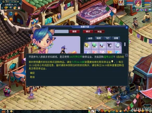 活动期间的每天12:00至18:00,大家不仅可以在“霓裳姑娘”处点击“我要开团”并支付100W梦幻币保证金直接进入到开团模式,还可以点击“我要参团”查看当日团购内容,加入到其他玩家的团购当中。在18:10至24:00这段时间内,大家为已购买商品进行付款能够低价获得自己心仪物品。随着参团人数的增多,大家所获得的折扣力度也会逐渐变大,最低能享受到7折购买福利。