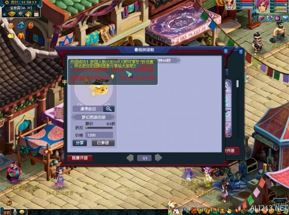 当大家成功参与团购后,可以将自己的团购信息分享到好友频道或聊天频道,邀请其他玩家参与其中。而且点击其他玩家的团购链接还能快速一键参团,入手更多实惠商品。不过值得注意的是,每件物品的参团人数必须要达到50人后才能成团,每天全服开团上限为50位,每名玩家每天只能开团1个,如果玩家已有开团成功的物品,那么在参团时就只能选择另外2个物品。除此之外,如果大家组团失败,那么还可以在当天商品付款期间前往“霓裳姑娘”处取回保证金,并且团购商品每消耗1仙玉即可获得1点清凉积分,可以兑换各种稀有奖励或参与游戏抽奖。