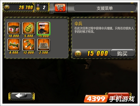 6.游戏中要善于使用支援中心。当有士兵死亡时,记得购买伞兵填充。