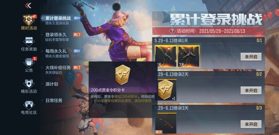 活动时间为:2021.05.29-2021.06.13。该活动为累计登录活动,玩家仅仅需要登录7天就可以领取到全部奖励,时间方面是非常宽裕的,根本不怕漏签。